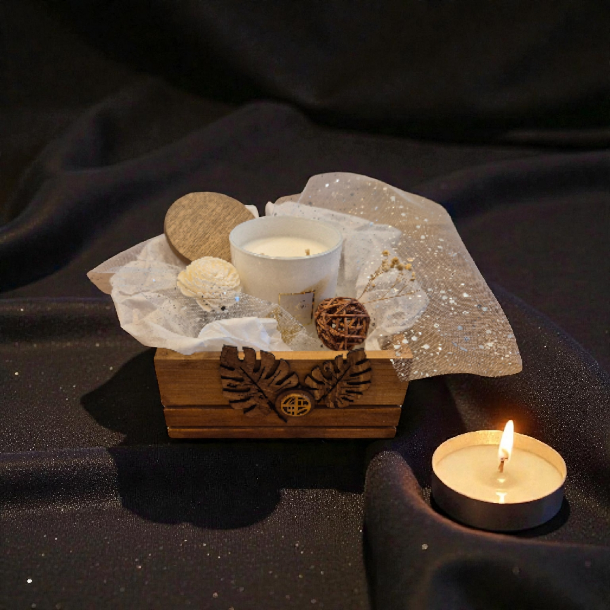 Coffret Cadeau “Voile de Nuit” – Bougie Artisanale en Cire de Soja & Coffret en Bambou