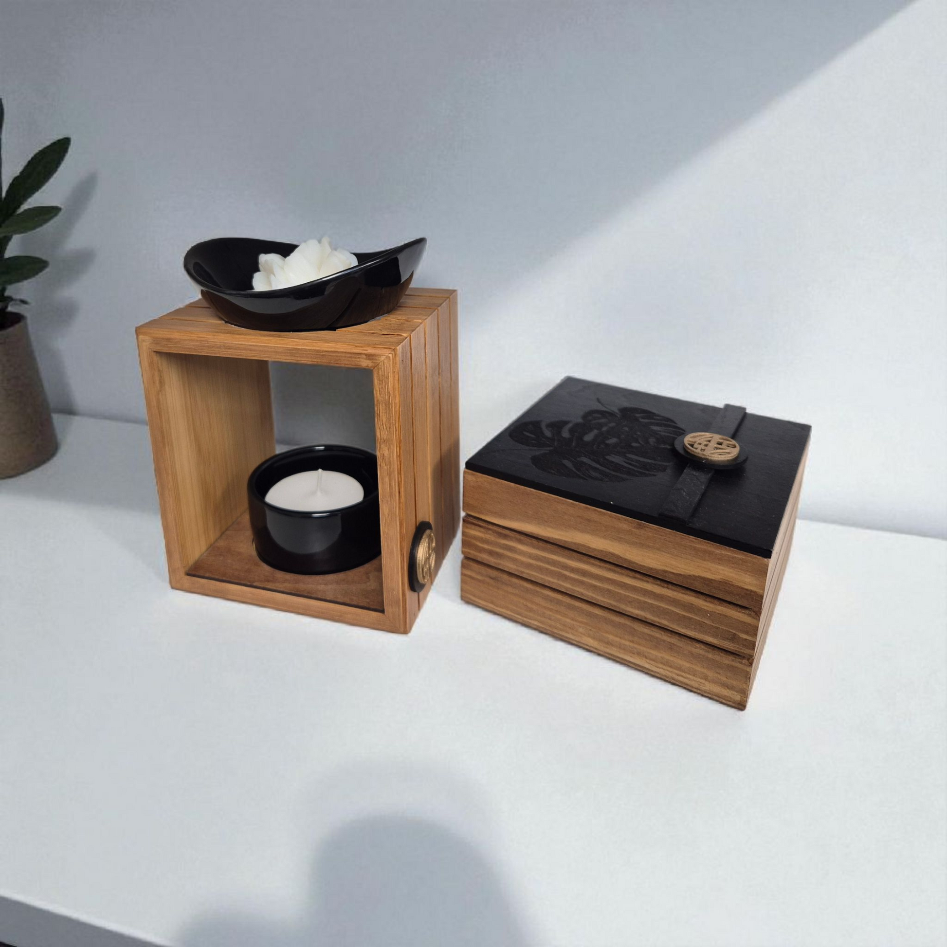 Laissez-vous séduire par notre coffret brûleur à fondants parfumés, une création unique alliant artisanat, modernité et senteurs d’exception. Conçu pour sublimer votre intérieur, ce coffret rassemble un brûleur en bois décoré à la main et une boîte à fondants assortie, elle aussi travaillée artisanalement, avec un motif gravé pour rappeler le design du brûleur. Un duo harmonieux et élégant pour présenter et conserver vos fondants.
