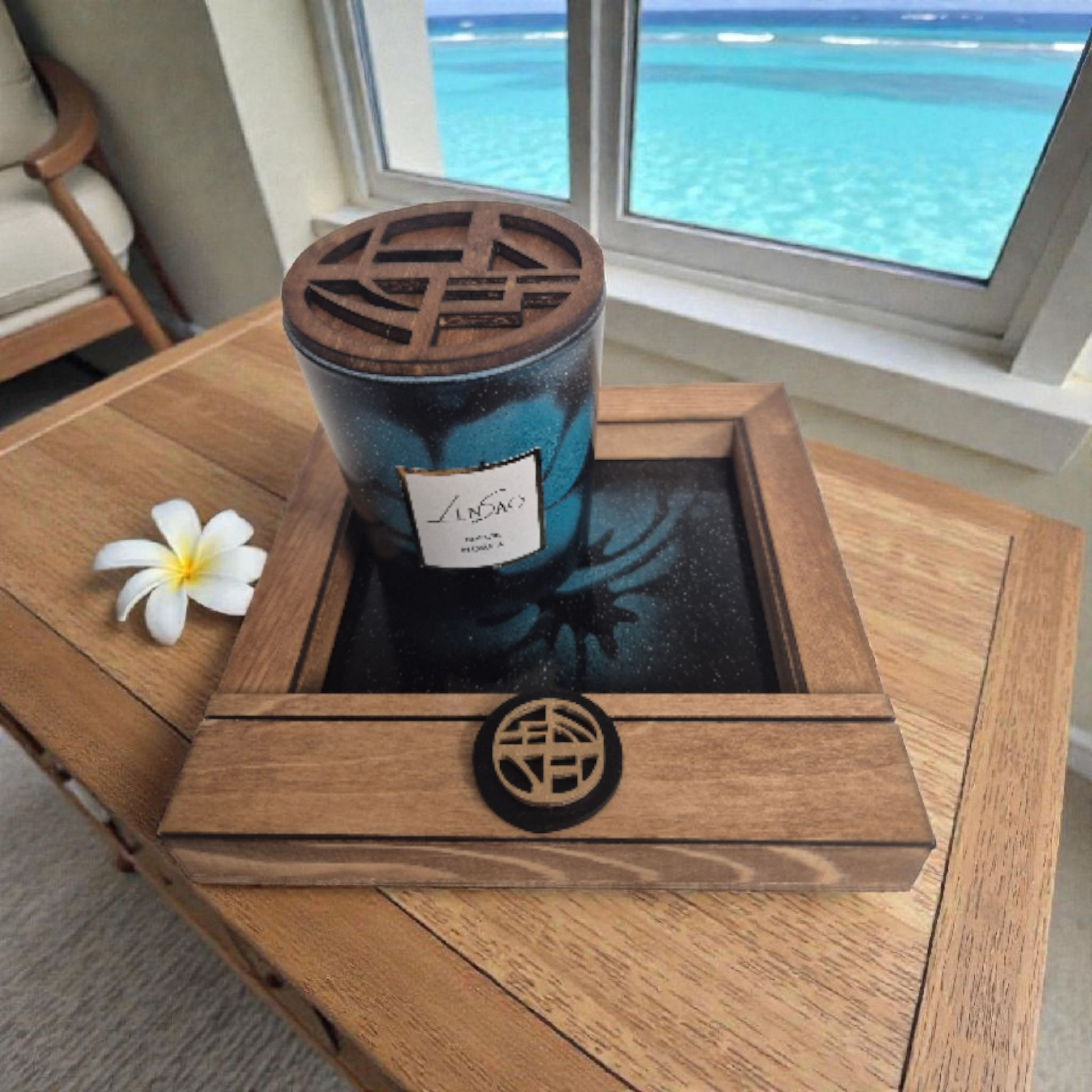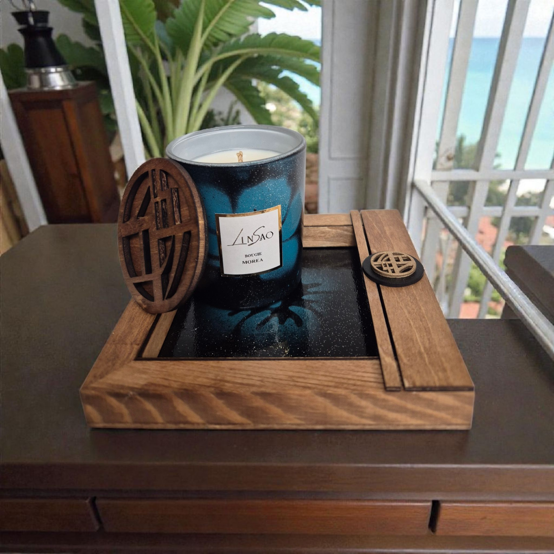 Mini bougie parfum Morea & plateau en bois peint à la main